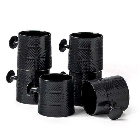 JCPL Grid Checkmate Coffee & Tea Mugs Set of 6, Black