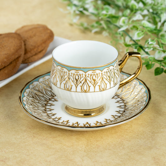 Clay Craft Georgian Ebony Cup & Saucer, Set of 12 (6 Cups + 6 Saucers), 140 ml, (E658)