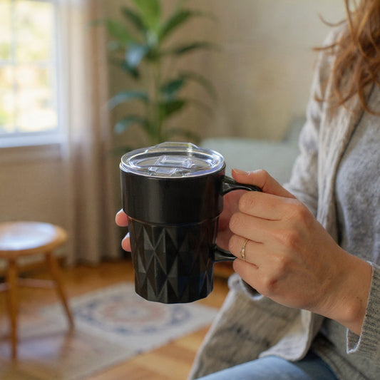 Clay Craft Jewel Diamond Pebble Black Ceramic Mug with Acrylic Lid – 350 ml, Perfect for Tea, Coffee & Milk