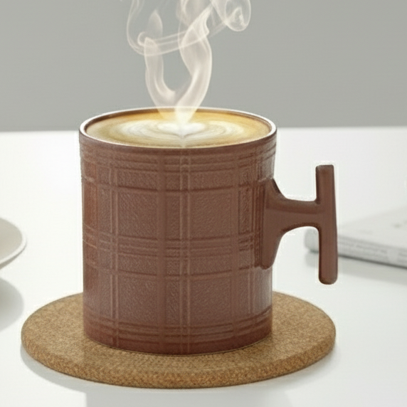 JCPL Grid Checkmate Milk & Coffee Mugs, 1 Pcs, Olive