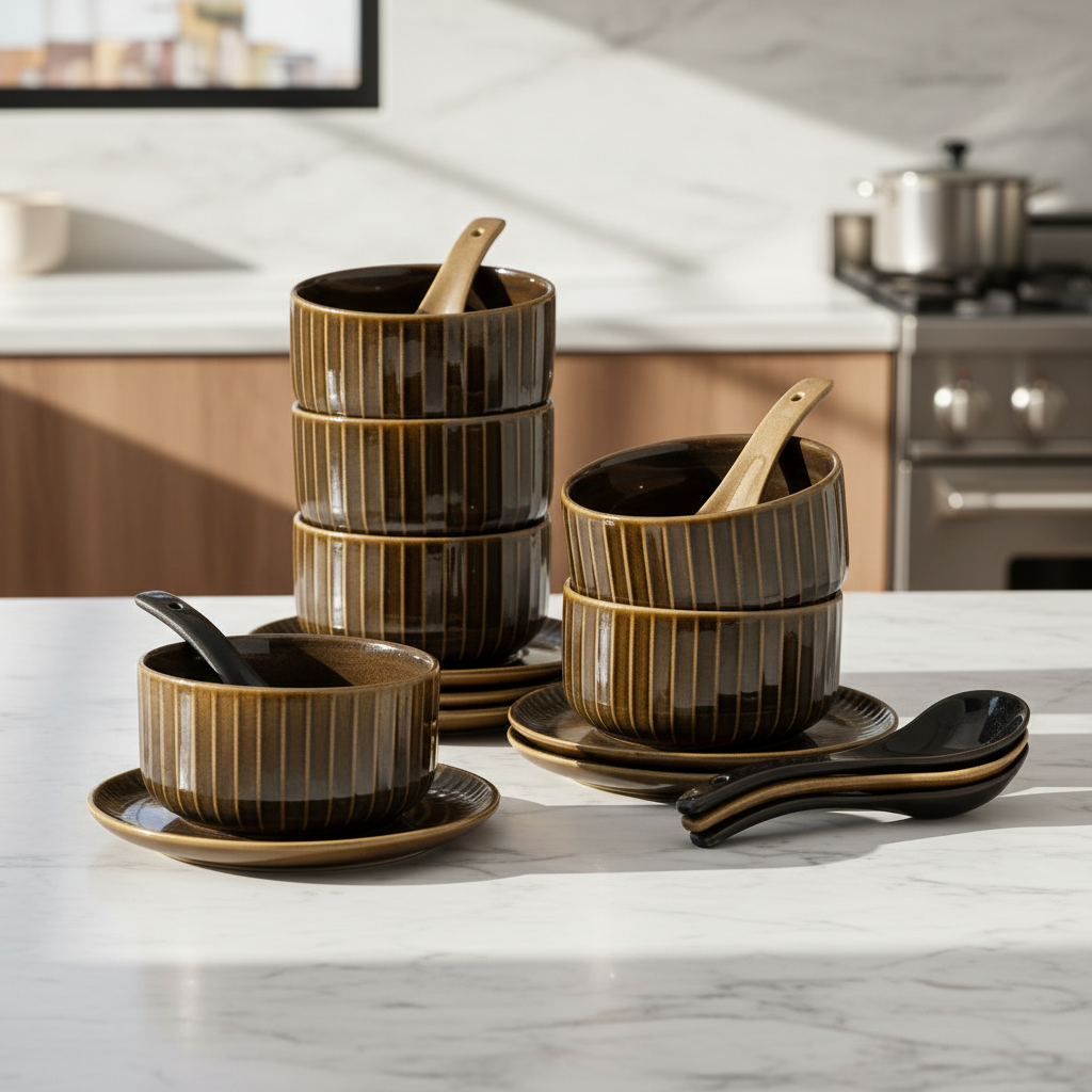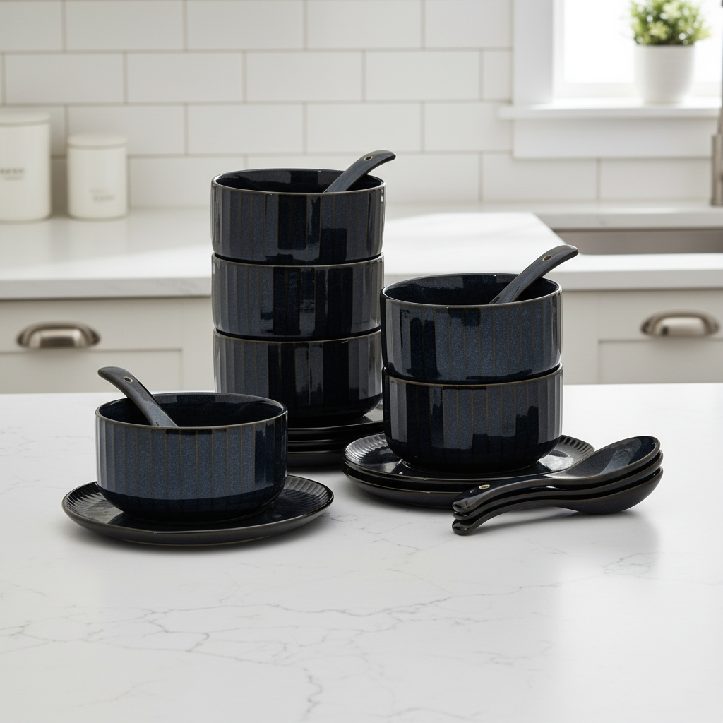 Clay Craft Karina Ebony Cup & Saucer, Set of 12 (6 Cups + 6 Saucers), 180 ml, (E629)
