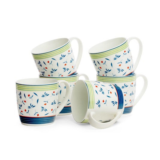 Clay Craft Alton Flower Print Coffee & Tea Mugs Set of 6 (H391)
