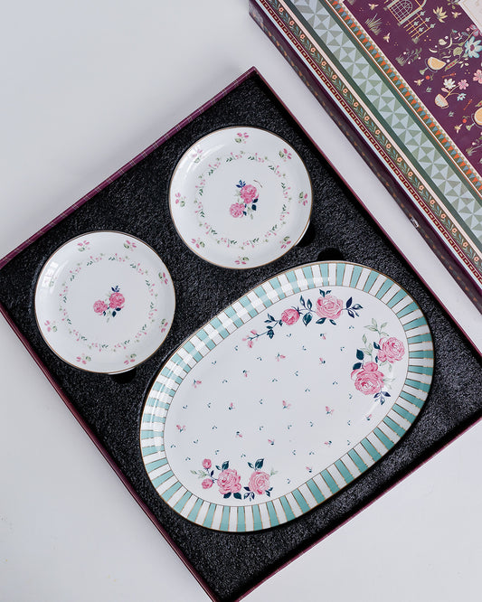 Magique by The Wishing Chair x Clay Craft, Portrait of a Rose 1 Big Charlie Platter with 4 Dessert Mini Plates
