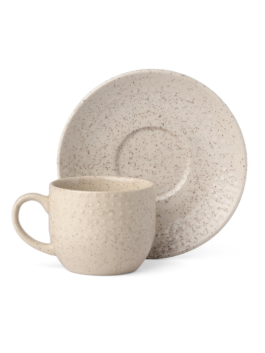 Apex Pebble Beige Cup & Saucer, Set of 12 (6 Cups + 6 Saucers), 180 ml