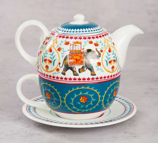 India Circus Swirling Safari Tea for One Set of 3 (1 Teapot, 1 Cup and 1 Saucer)