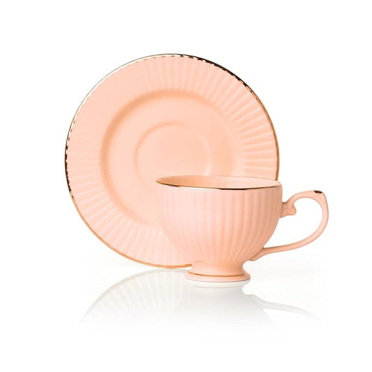 Julie Impression 1401 Elegant Cup & Saucer, Set of 12 (6 Cups + 6 Saucers) (IVORY)