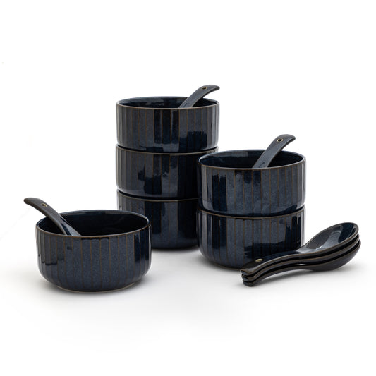 Clay Craft Pebble Mid Night Blue Ravonna Soup Bowl Gift Set of 12 Pcs