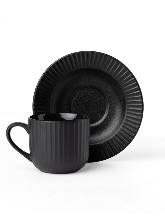 Linea Pebble Black Cup & Saucer, Set of 12 (6 Cups + 6 Saucers), 170 ml