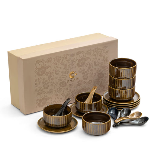Clay Craft Pebble Golden Brown Ravonna Soup Bowl Gift Set of 18 Pcs
