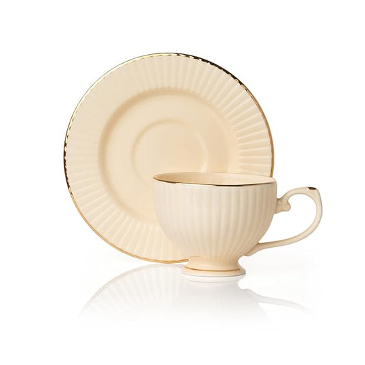 Julie Impression 1401 Elegant Cup & Saucer, Set of 12 (6 Cups + 6 Saucers) (IVORY)
