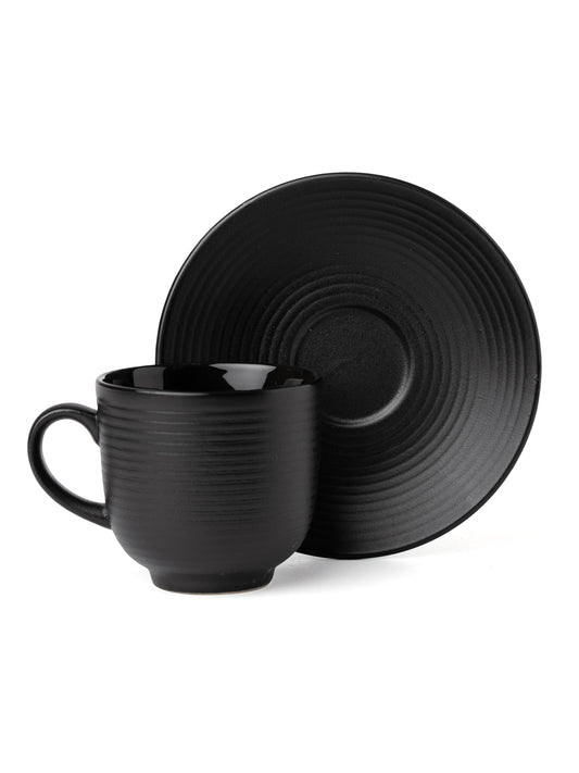 Horizon Pebble Black Cup & Saucer, Set of 12 (6 Cups + 6 Saucers), 220 ml