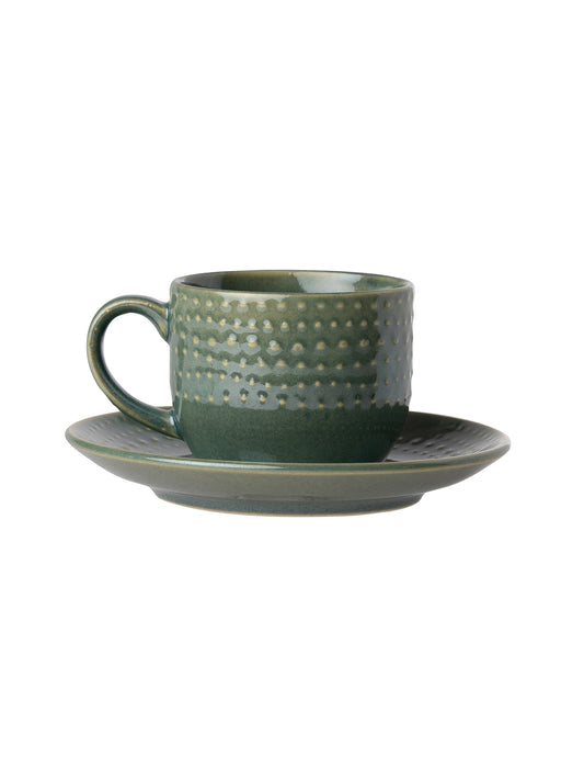 Apex Pebble Green Cup & Saucer, Set of 12 (6 Cups + 6 Saucers), 180 ml