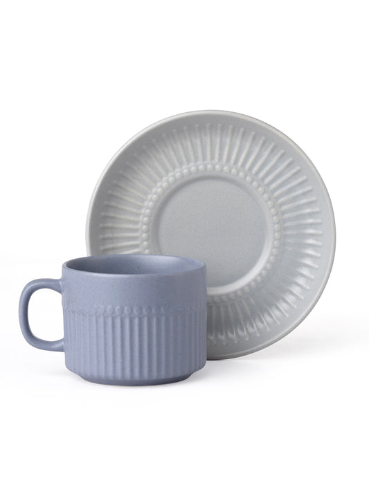 Crimson Matte Plebble Blue Cup & Saucer, Set of 12 (6 Cups + 6 Saucers), 210 ml