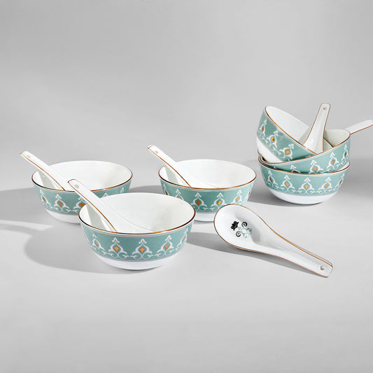 India Circus Grandeur Greens Georgian Soup Bowl Set of 12 Pcs