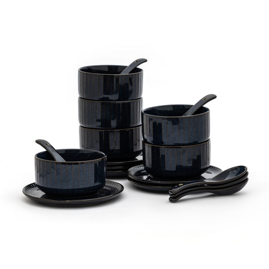 Clay Craft Pebble Mid Night Blue Ravonna Soup Bowl Gift Set of 12 Pcs