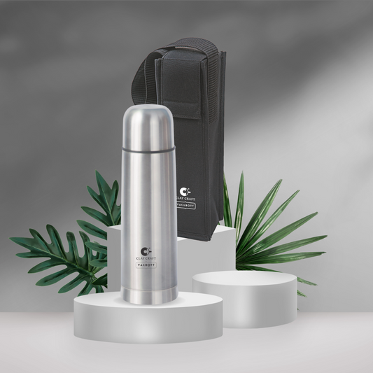 Vacbott Vaccum Bottle, Terra Double Walled 24 Hours Hot and Cold Water Bottle with Bag, Silver, BIS Certified