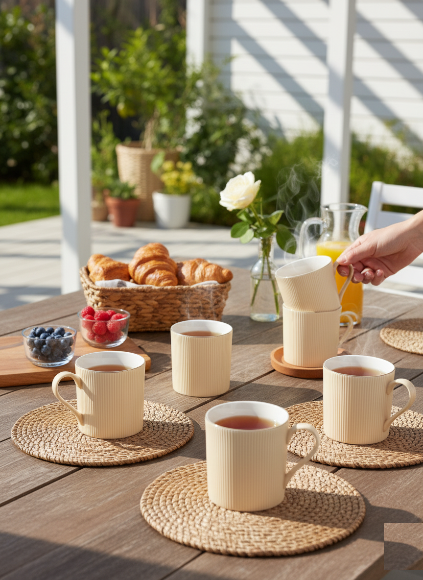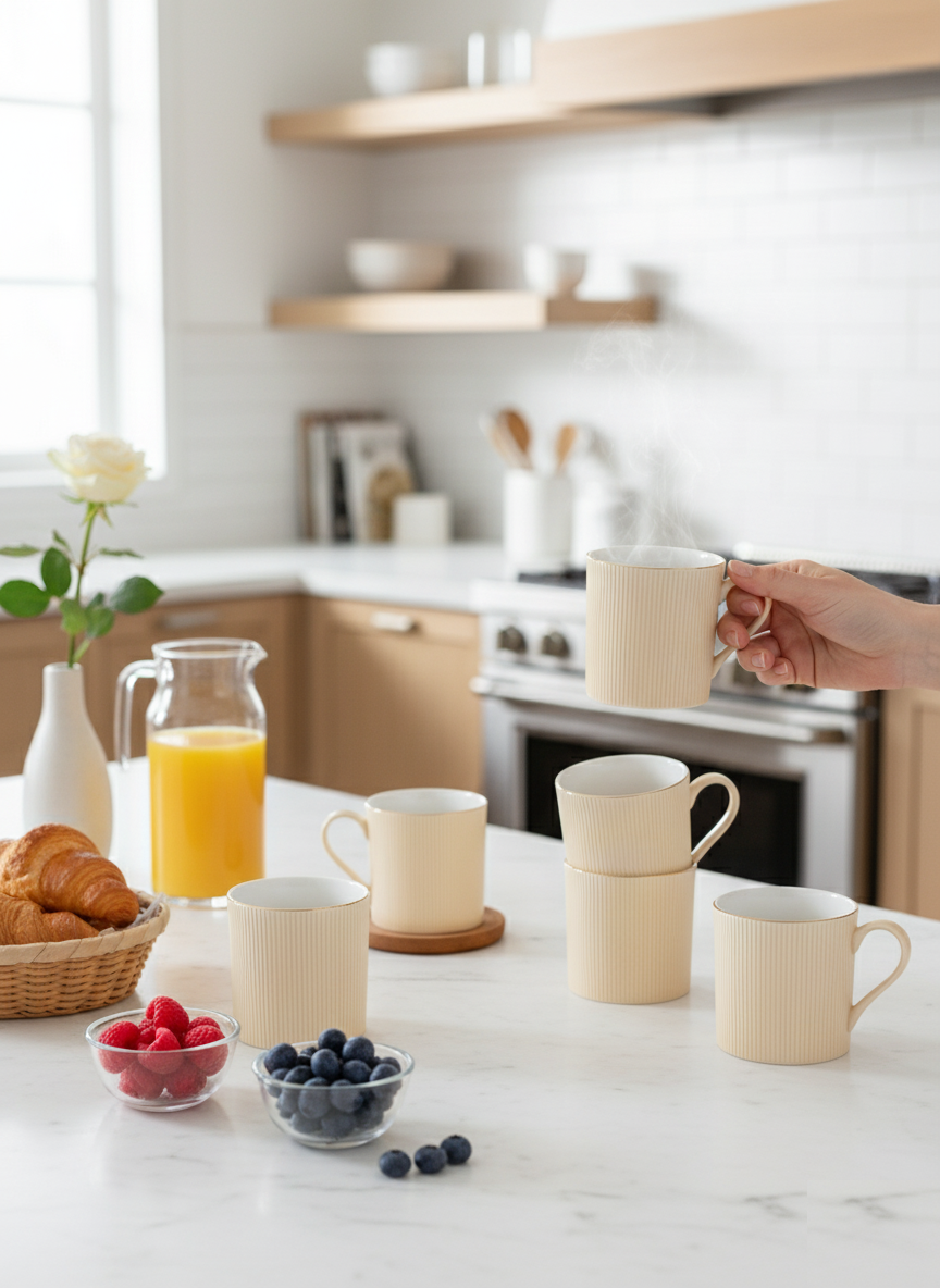 Elevate your daily coffee and tea rituals with the stunningĀ Ethan Impression Mug Set. This collection includes six durable ceramic mugs, all featuring a sophisticated, textured design in a contemporary Ivory finish.