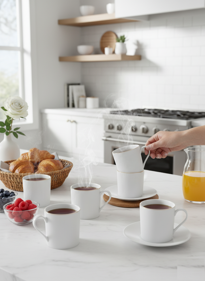 Perfect for sharing a generous cup of coffee, tea, hot chocolate, or milk with guests, this set is designed for everyday use and built to last.
