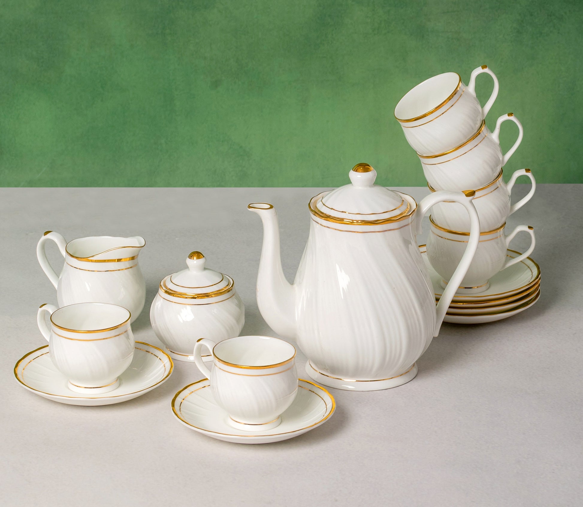 - Content: 15-piece tea set includes 1 Tea Pot, 1 Milk Pot, 1 Sugar Pot, 6 Cups & 6 Saucers