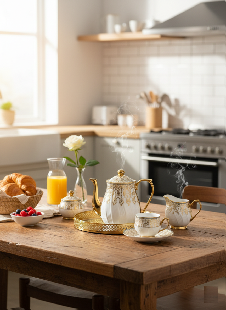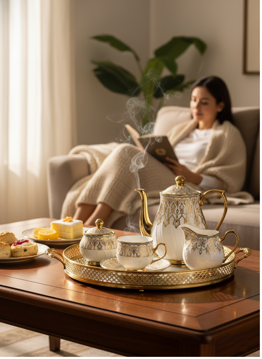 - Volume: Tea pot-1200 ml, Milk pot-200 ml, Sugar Pot-170 ml,Ā Cup&Saucer-155 ml