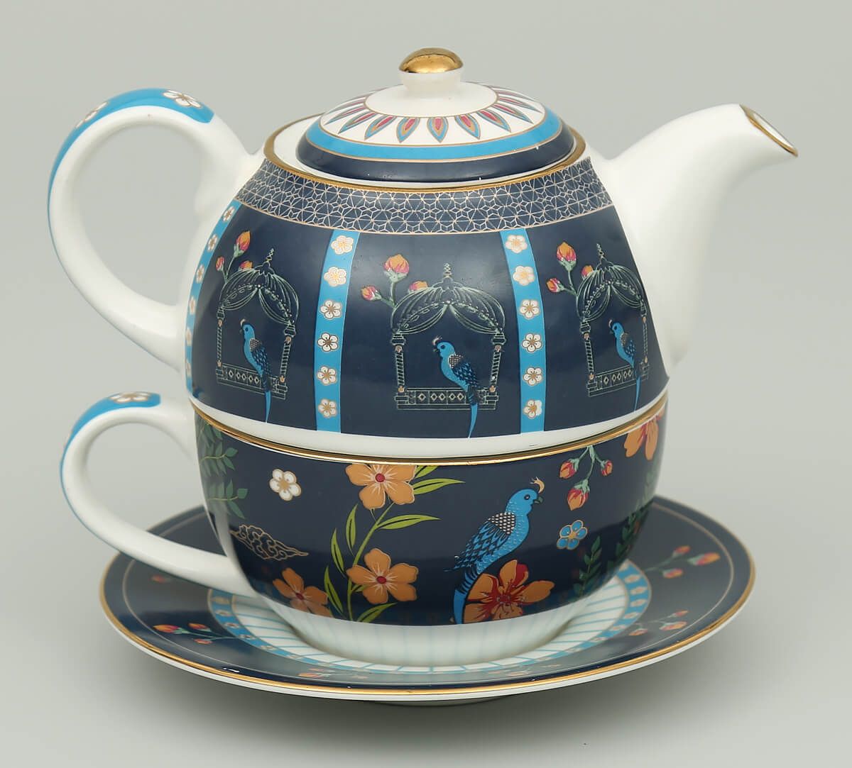 We absolutely love this tea for one set from the limited edition Verdant Chef d'oeuvre line. The design on the elegant pot has everything we love: blue cockatoos, pretty flowers, mint green portico and beautiful motifs. It is perfectly matched with its cup and saucer. This is part of our limited edition festive collection. Nibble on your truffle cannabis as you sip on the golden tea liquor and raise a toast to yourself. Check it out online from our collection before we sell out.