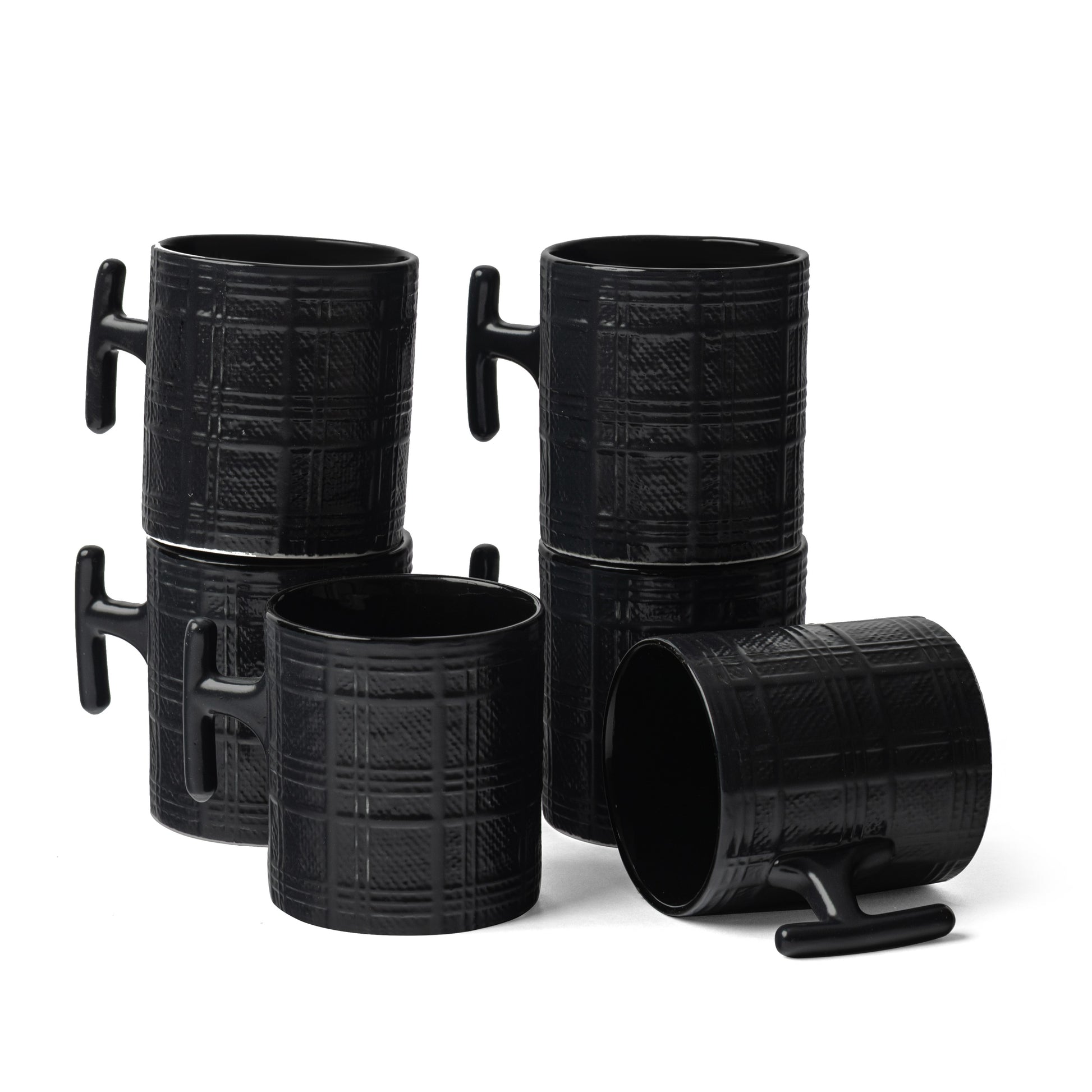 JCPL Grid Checkmate Coffee & Tea Mugs Set of 6, Black