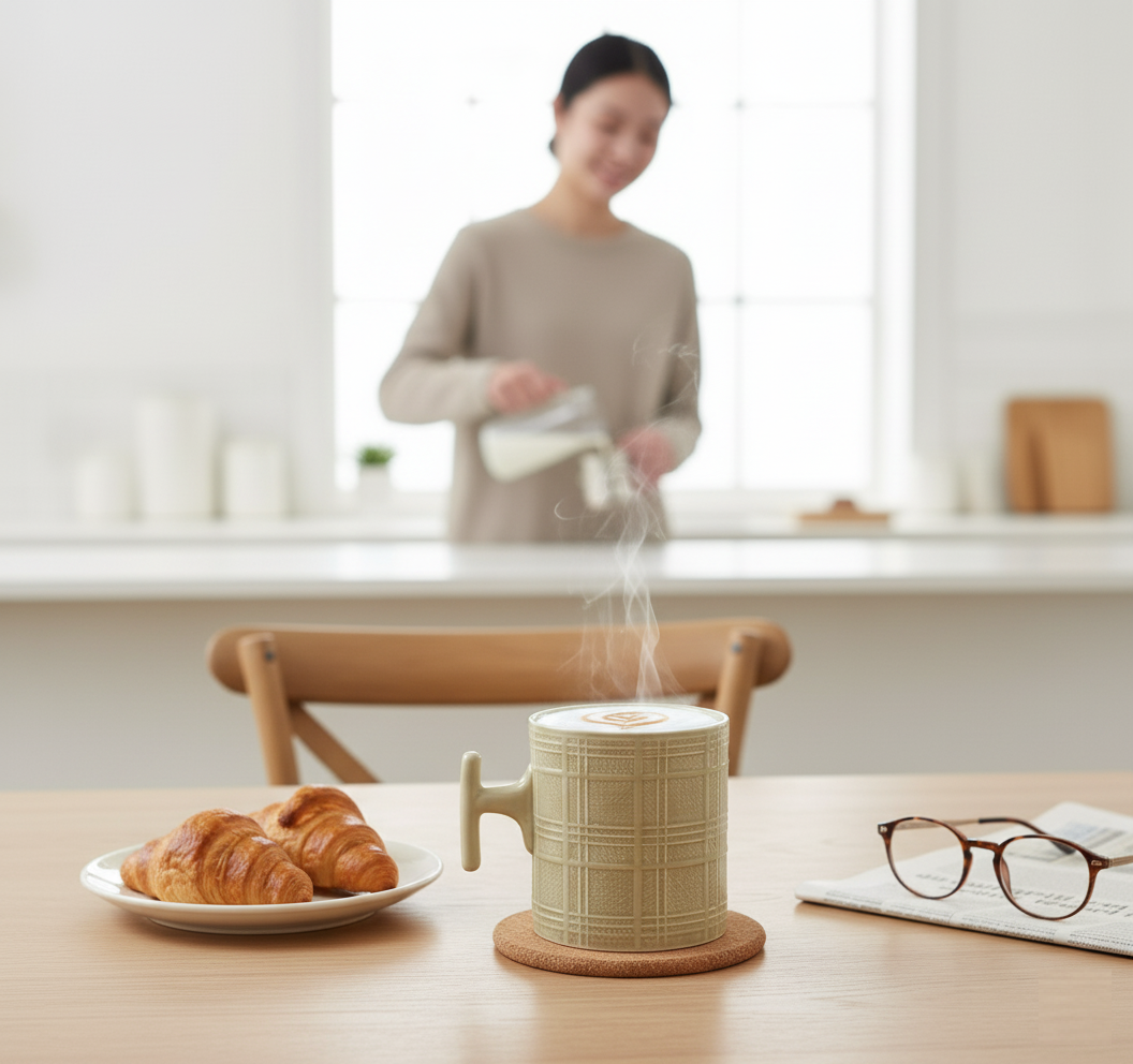 JCPL Grid Checkmate Milk & Coffee Mugs, 1 Pcs, Olive