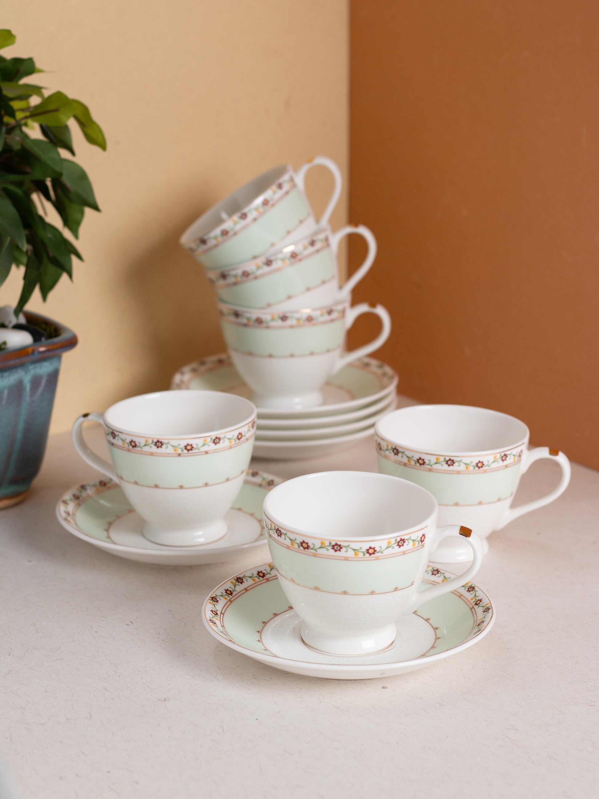 JCPL King Crysta Cup & Saucer, 180ml, Set of 12 (6 Cups + 6 Saucers) (CR402)