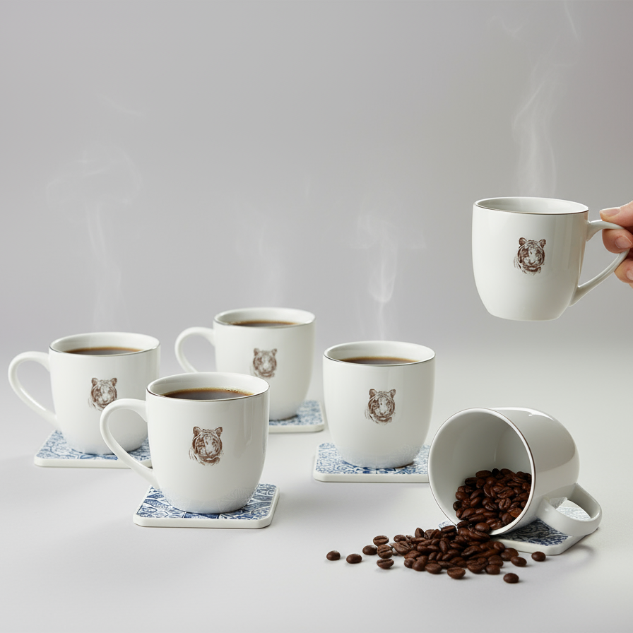 JCPL Oscar Clark Tiger Tea & Coffee Mugs, Set of 6