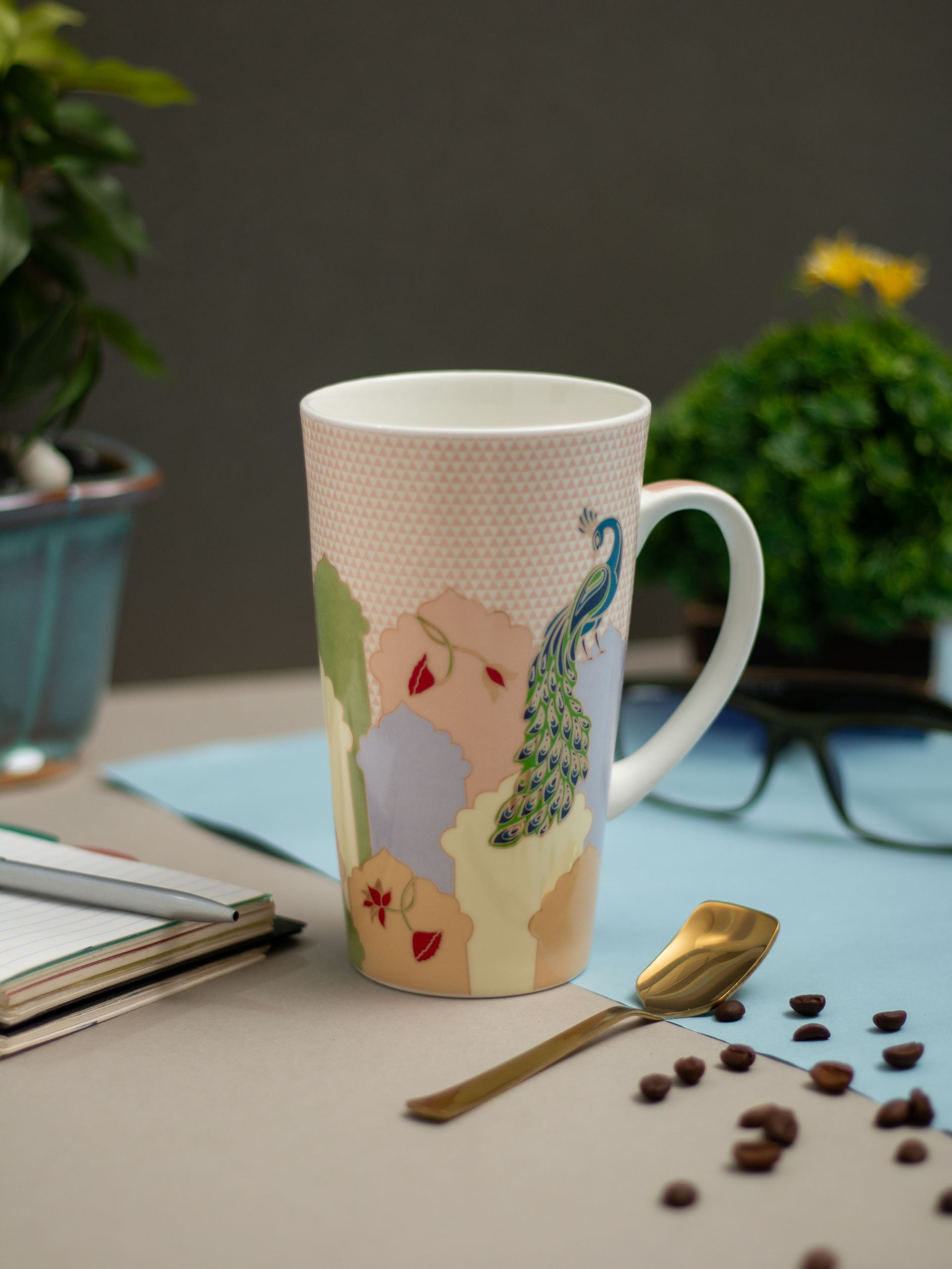 JCPL Tall Elephant/ Peacock Printed Coffee/ Milk Mug, 1 Piece, 600ml (430)