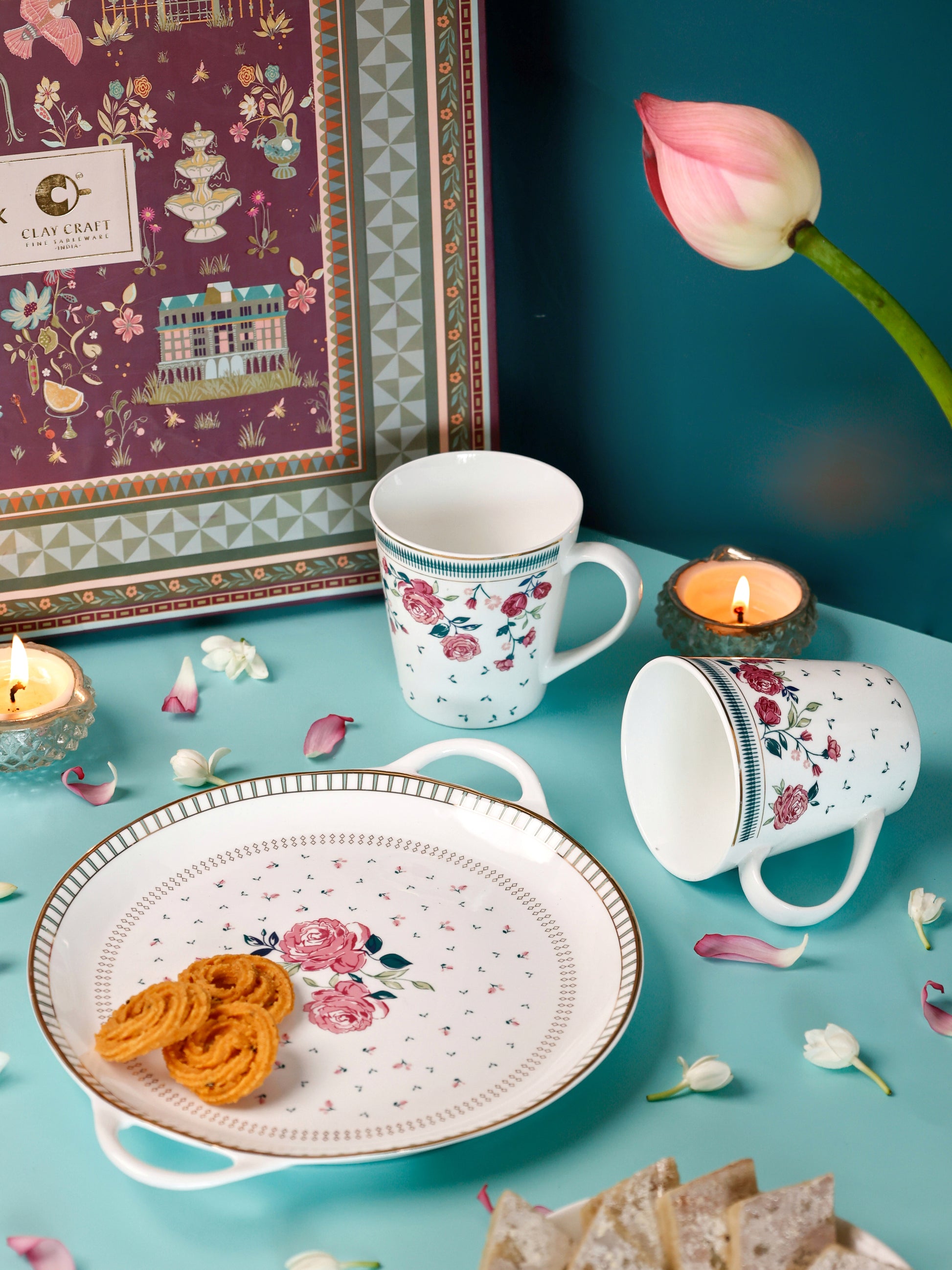Magique by The Wishing Chair x Clay Craft, Portrait of a Rose Tawa Platter with Zing Medium mug Set