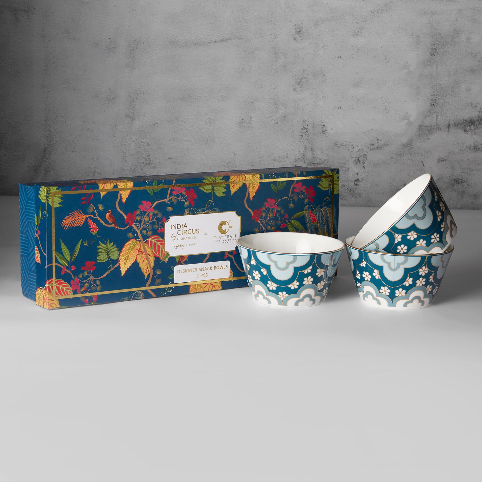 Featuring delicate ceramics that will bring a touch of elegance to your home the Oceanic Opulence Nikko Bowl comes in a set of 3. Made from top-quality porcelain, these bowls are the perfect size for desserts or compotes, and their intricate design makes them ideal for serving small dishes at dinner parties. Completely handmade and hand-painted in India, each bowl features garden-inspired motifs that reflect traditional Indian artistry. Get yours today before itâs too late - search for its ranges online at India Circus!