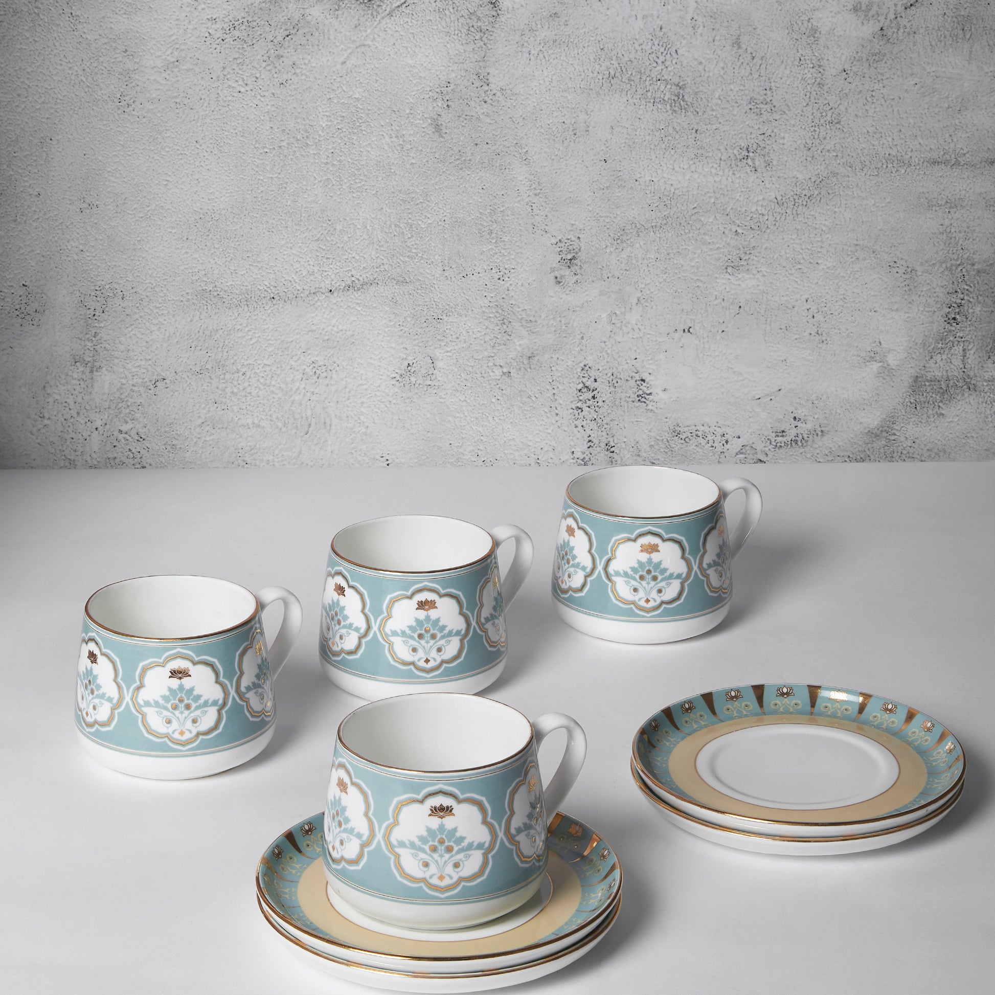 Introducing the Regal Romance Cup and Saucer that comes in a set of 4. From hours of skilled craftsmanship to exquisite, eye-catching designs, this dinner set will surely impress whosoever lays their eyes on it! Enjoy your favorite meals served on beautiful dishes with a unique design for each piece â white flowers painted in pastel colors creating an unforgettable Regal Romance. Get ready to enjoy mealtimes like never before, thanks to India Circusâ Regal Romance Cup & Saucer Set!
