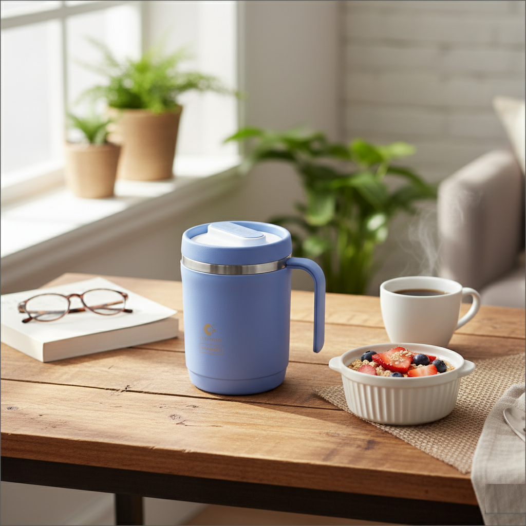 The Vacbott Dyona Mug is your perfect everyday companion — a sleek, 400ml insulated travel mug designed for the modern lifestyle. With its double-walled vacuum insulation, your beverages stay hot or cold for up to 24 hours, while the leak-proof lid ensures zero mess on the move.